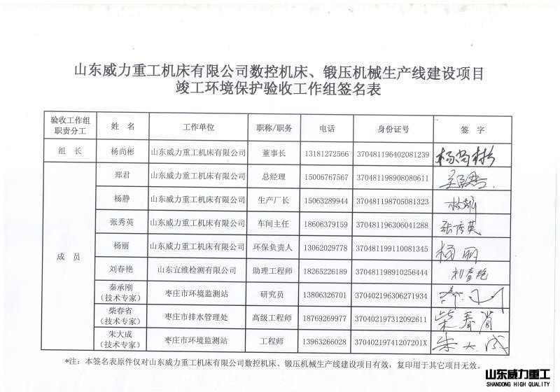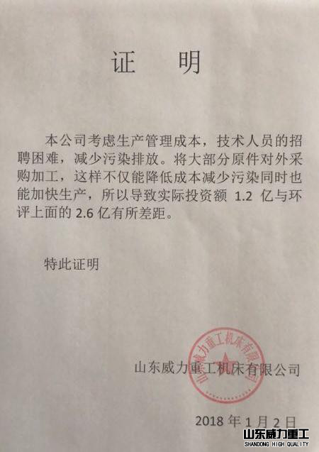 山東威力重工機床有限公司數控機床、鍛壓機械生產線建 設項目 |