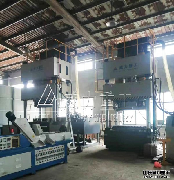 (6)、冷卻后的顆粒輸送到1250噸建筑塑料模板熱壓油壓機-1250噸四柱油壓機;